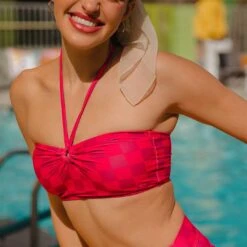 It’s adjustable. It’s supportive. It’s our Switchback Crop in a feminine sage stripe that gives total vacation vibes. We especially love this suit’s high neck and flattering side seams!
