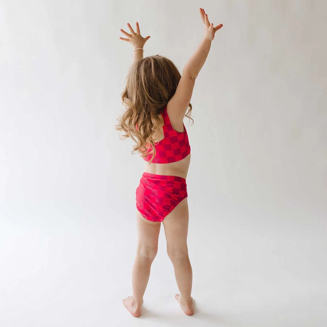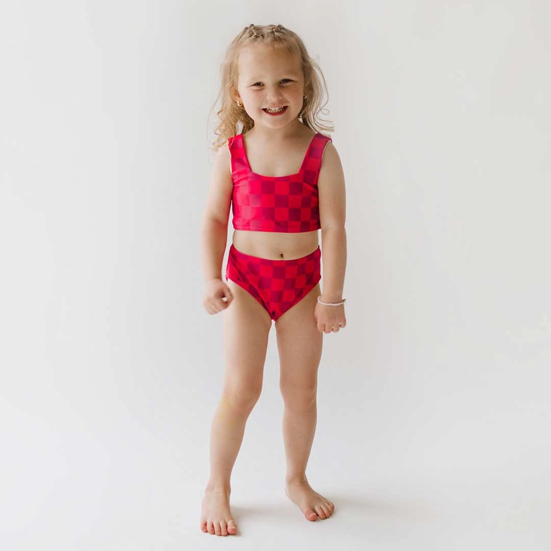 Match your mini in our Mini Olivia Two-Piece Set! In a magenta check pattern, this sweet pink check two piece will bring a playful pop of color and style to any summer day. Ready, set, swim!