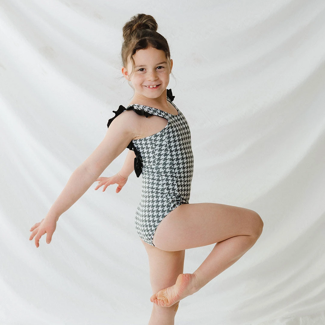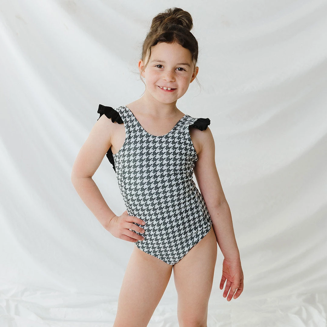 This one piece houndstooth swimsuit makes for one stylish looking little with a timeless print and statement ruffles. Oh and bonus: There’s a set for you too! Coordinate with your little and make family pics dreams come true.