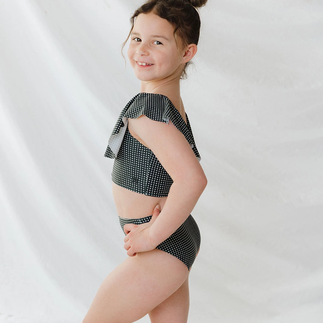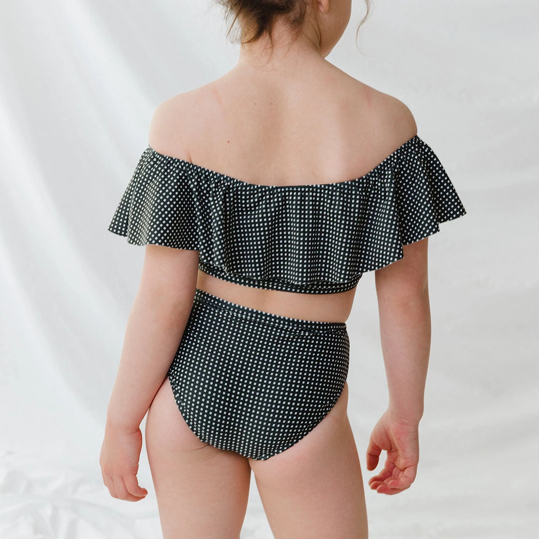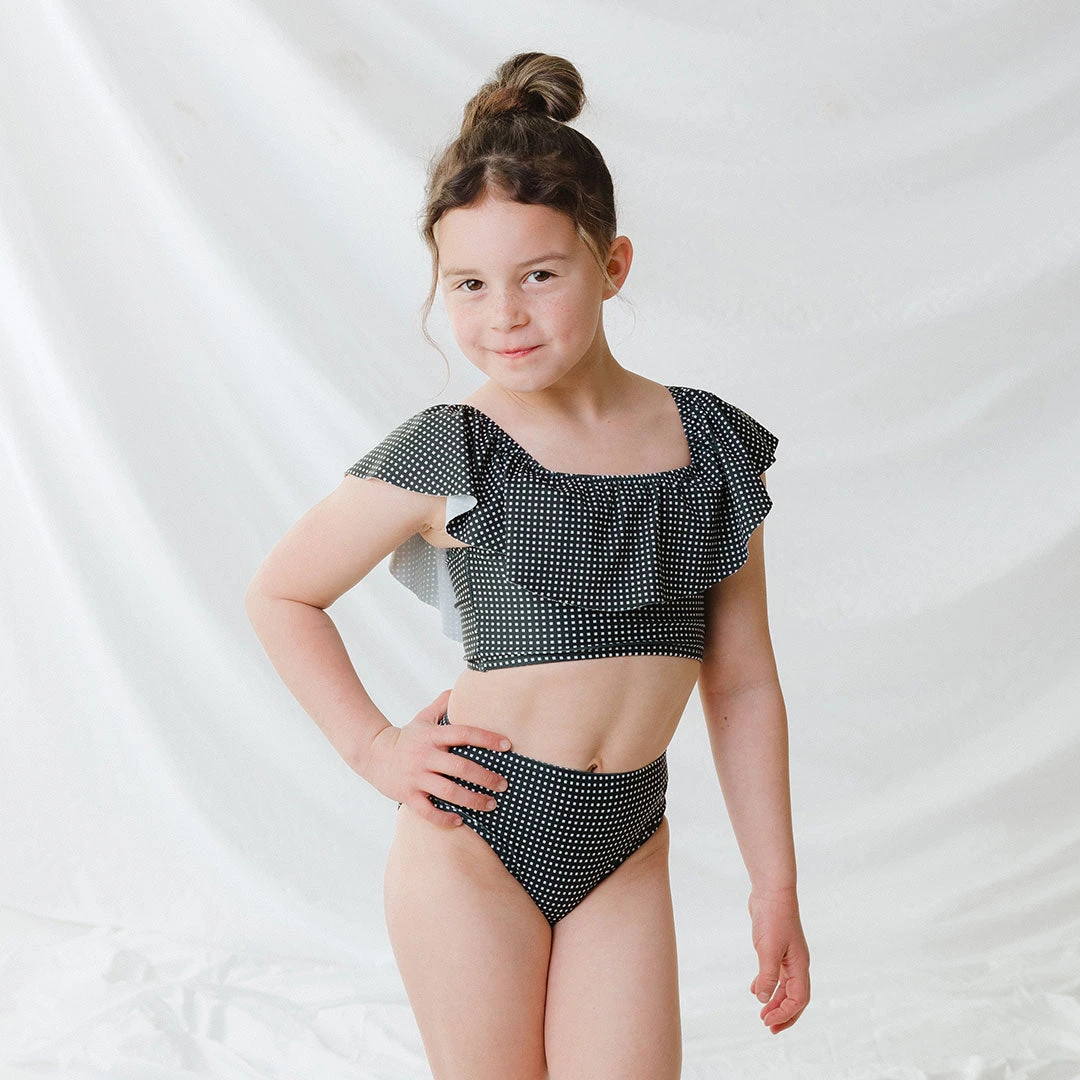 We love a good coordinating swim suit and these black check wave tankini sets are the perfect complement to our big kid sets. Made with our high quality, durable USA made fabric, our kids suits don’t just look good, but they feel good, too. SPF rated fabric adds an extra layer of protection for your little one when you lather them up for their day in the sun.