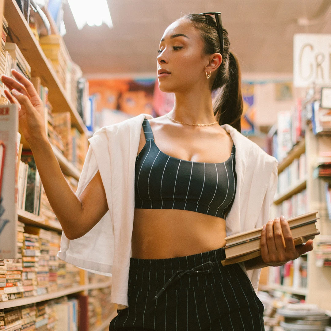 Momentum Bra, Navy Pinstripe