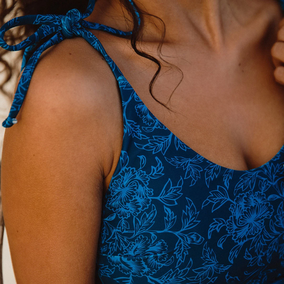 Adorable tie straps and a bold navy floral pattern make this Natalie a new favorite! Wear this suit to the pool, beach, or pair with some pants for an adorable bodysuit look! Plus, the versatile and comfortable design of this suit is nursing and momma-friendly!