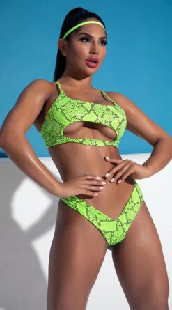 Whether it’s the color or the barely there style, they’ll be gazing your direction on the beach in this sexy exclusive swimsuit bottom featuring an adjustable crotch panel, strappy tie sides, and a thong cut back. (Top not included.)